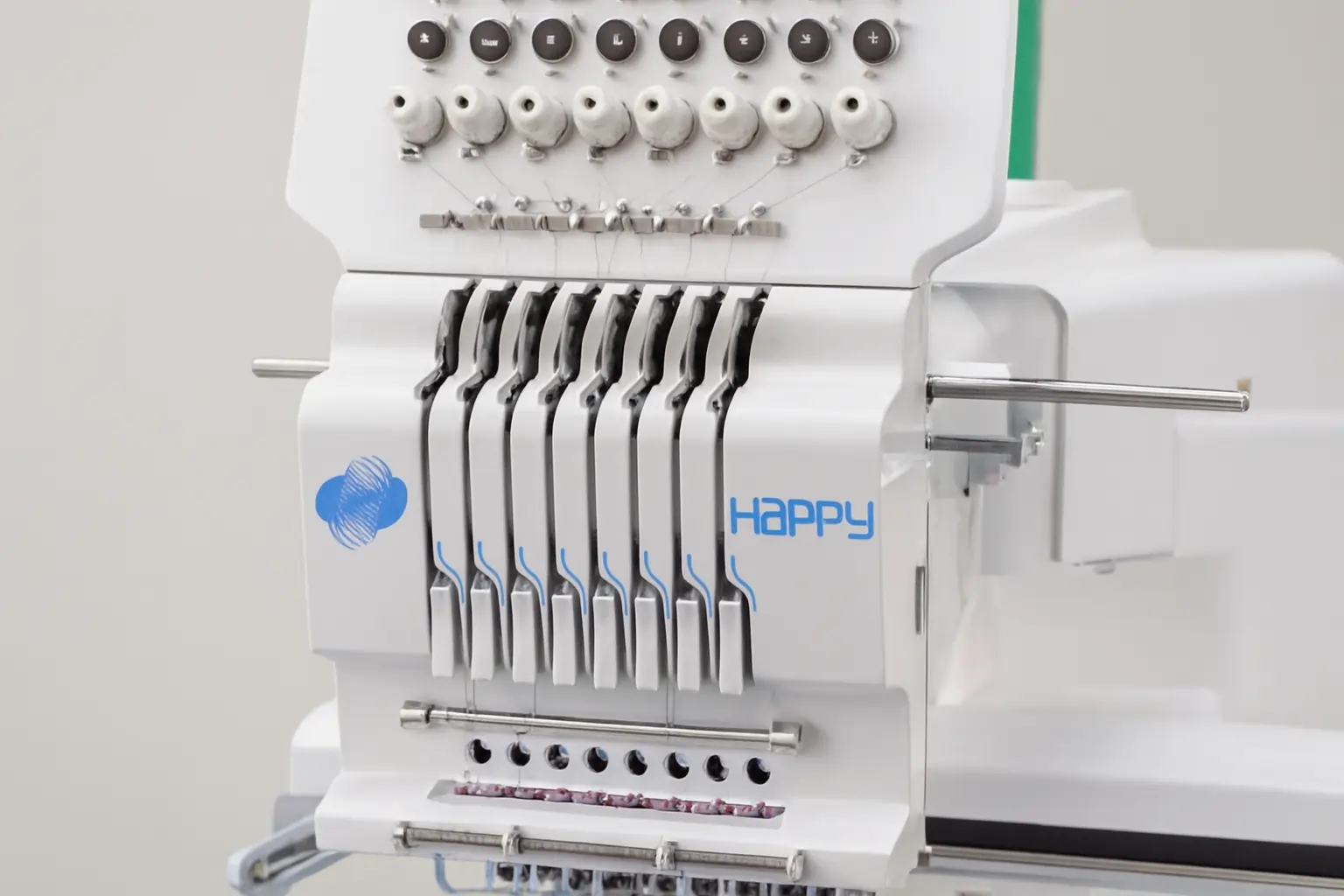 HCH is the 7-needle auto color change compact size single head embroidery machine for entry level embroiderers and shops.